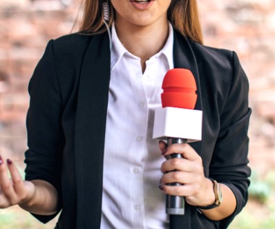 記者会見で、多くの記者たちが集まってフラッシュを焚く…